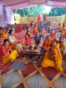 त्री परिवार शांतिकुंज के निर्देशन में गायत्री शक्तिपीठ एवं गायत्री परिवार रचनात्मक ट्रस्ट के संयुक्त तत्वाधान में जागृति महिला मंडल द्वारा 16 दिसंबर से 19 दिसंबर तक जी बाय एम सी ग्राउंड पर 24 कुंडी गायत्री शक्ति संवर्धन यज्ञ आयोजित किया जा रहा है। यज्ञ के प्रथम दिन सर्वप्रथम संगीतमय वैदिक मित्रों के साथ सभी देवी देवताओं का आह्वान किया गया पांडाल में बैठे सभी श्रद्धालुओं ने कहा कि ऐसा लग रहा है कि सभी देवता अपने वाहनों पर यज्ञ स्थल में पधार रहे हैं देव भगवान के बाद सभी देवताओं का पूजन गायत्री माता गुरुजी एवं माता जी का विशेष पूजन किया गया यज्ञ का संचालन शांतिकुंज से पधारी ब्रह्मवादिनी बहने श्रीमती सविता चाबुकर टोली नायक श्रीमती सविता सिंह श्रीमती दिव्या साहू श्रीमती मीना गोरिया श्रीमती हेमलता देशमुख एवं द्रौपदी जी द्वारा किया गया। कार्यक्रम संयोजक श्रीमती बबली बंसल एवं मीडिया प्रभारी डॉक्टर संजय गुप्ता ने बताया कि यह बहाने बचपन से शांतिकुंज में माता भगवती देवी के संरक्षण में रही हैं एवं कर्मकांड एवं संगीत में निपुणता हासिल की है इसीलिए इन्हें देव कन्याओं की संज्ञा दी गई है। मंच संचालन गायत्री शक्तिपीठ के प्रमुख दृष्टि सी के गुप्ता द्वारा किया गया उन्होंने बताया आज के यज्ञ में 10 विद्या आरंभ 15 गुरु दीक्षा 12 पार्टी लेखन 2055 संस्कार निशुल्क कराए गए श्री चंदन कॉल के निर्देशन में शक्तिपीठ द्वारा गुरुदेव द्वारा लिखित पुस्तकों का स्टाल भी लगाया गया है। आज के यज्ञ में सद्बुद्धि हेतु गायत्री मंत्र सभी के स्वास्थ्य हेतु महामृत्युंजय मंत्र देश की पर्यावरण समस्या के समाधान हेतु बीज मंत्र देश की समृद्धि हेतु गायत्री बीज मंत्र की आहुतियां दी गई। यज्ञ स्थल पर मेडिकल कैंप भी लगाया गया है।
